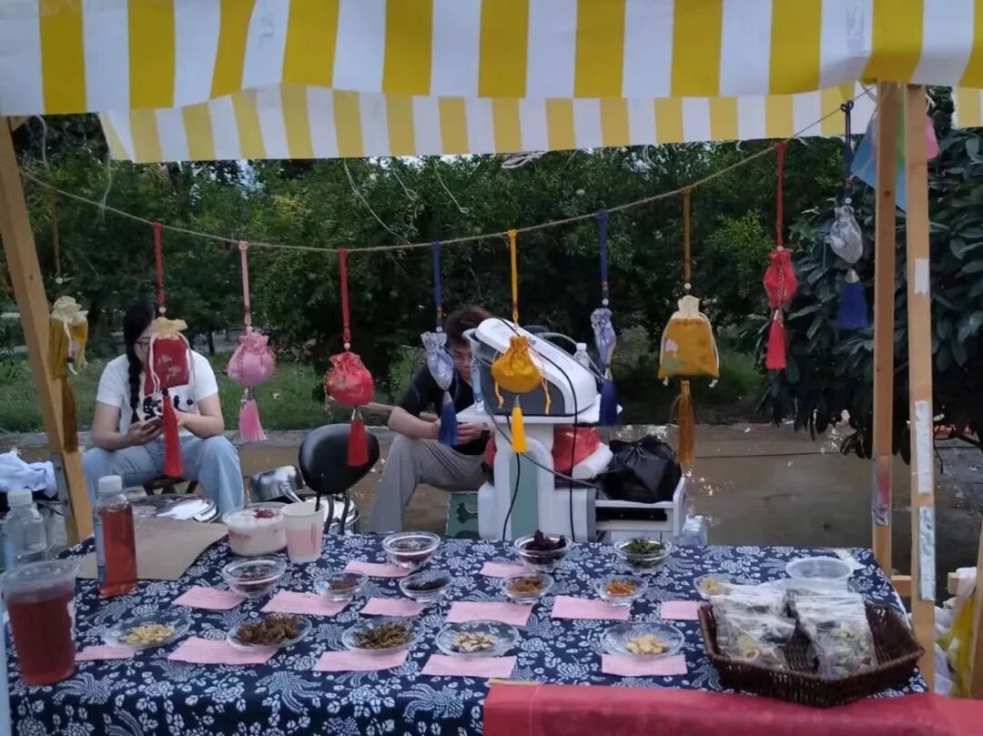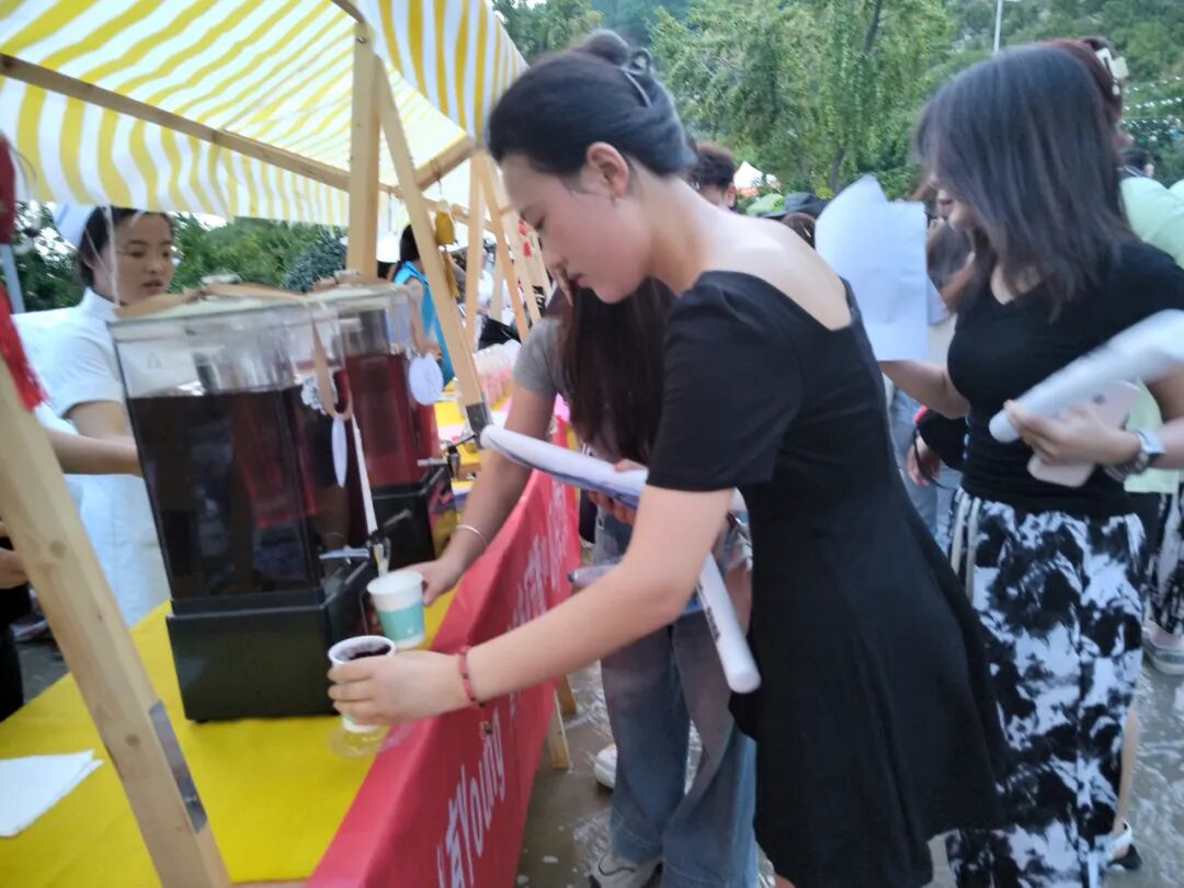 歌声阵阵,笑语连连,音乐节现场气氛轻松而热烈。现场不少青年人对中医药文化展区兴趣浓厚,驻足体验。展区分为中医适宜技术体验区、中药香囊展示区及中药茶饮免费品尝区,通过展板介绍、互动体验等形式,医护人员向到场的小青年们普及中医药知识,让更多人了解中医药的魅力和价值。中药茶饮的受欢迎程度更是超出了预期,医院精心调配的主推茶饮乌梅茶2.0、玫瑰洛神饮供不应求,让大家在狂欢之余也能品尝到健康、美味的中药饮品。