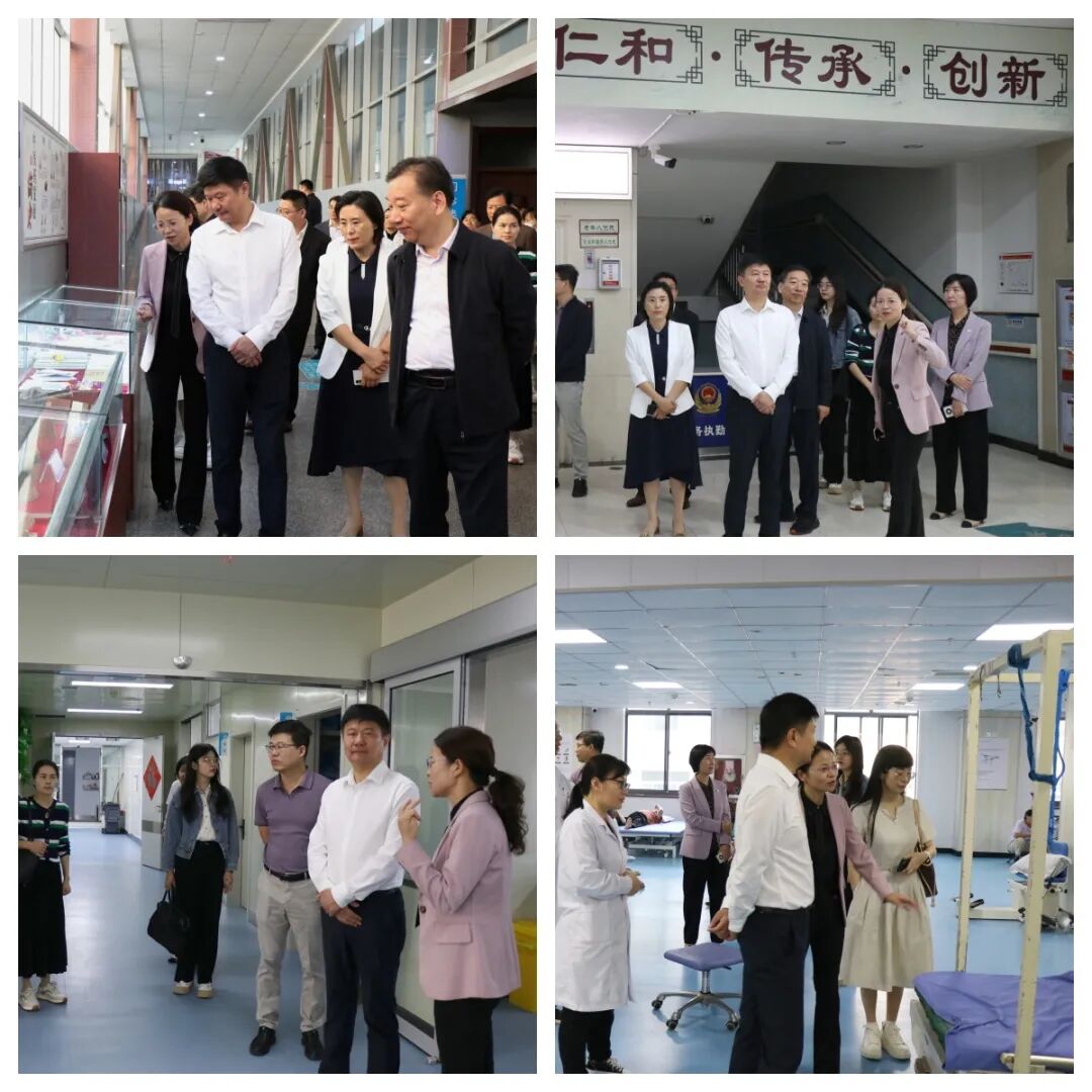 胡世平一行先后到医院中心院区针灸推拿科、中医外治门诊、慢病中心及北院区健康养生中心、重症康复科、康复医学科、智慧中药房等进行参观指导。