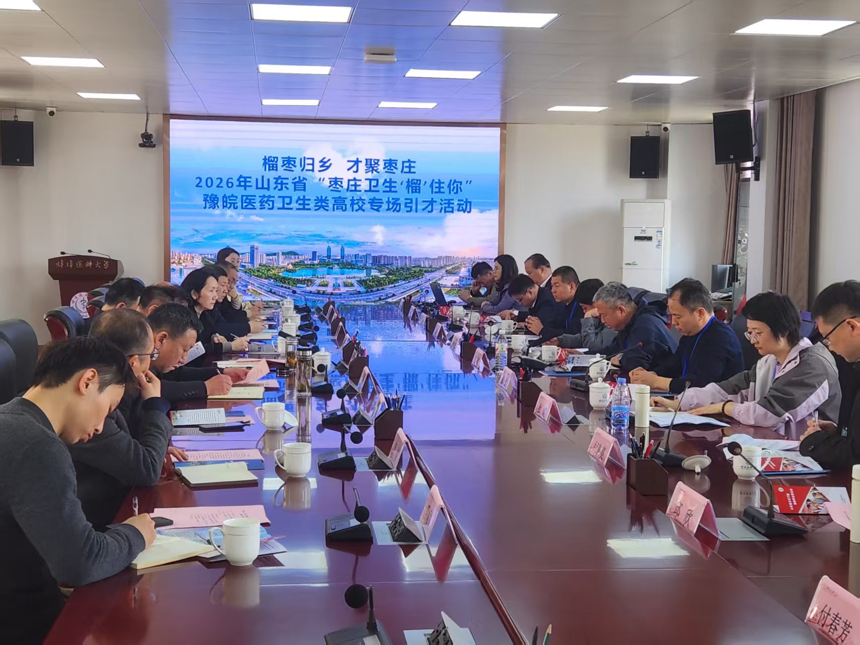 在蚌埠医科大学围绕“促就业、共发展”召开主题宣讲推荐会,重点宣传枣庄市人才引育环境与政策机遇,从历史底蕴、发展潜力到宜居生活,展现我市独特魅力,并系统阐述了全市卫生健康领域的战略布局、机构体系、科研平台及人才政策优化举措,同时与该校学生工作处、检验医学院、医学影像学院、护理学院等就卫生人才培养、医学科研创新等工作进行深入交流,传递出枣庄“求贤若渴”的真诚态度。
