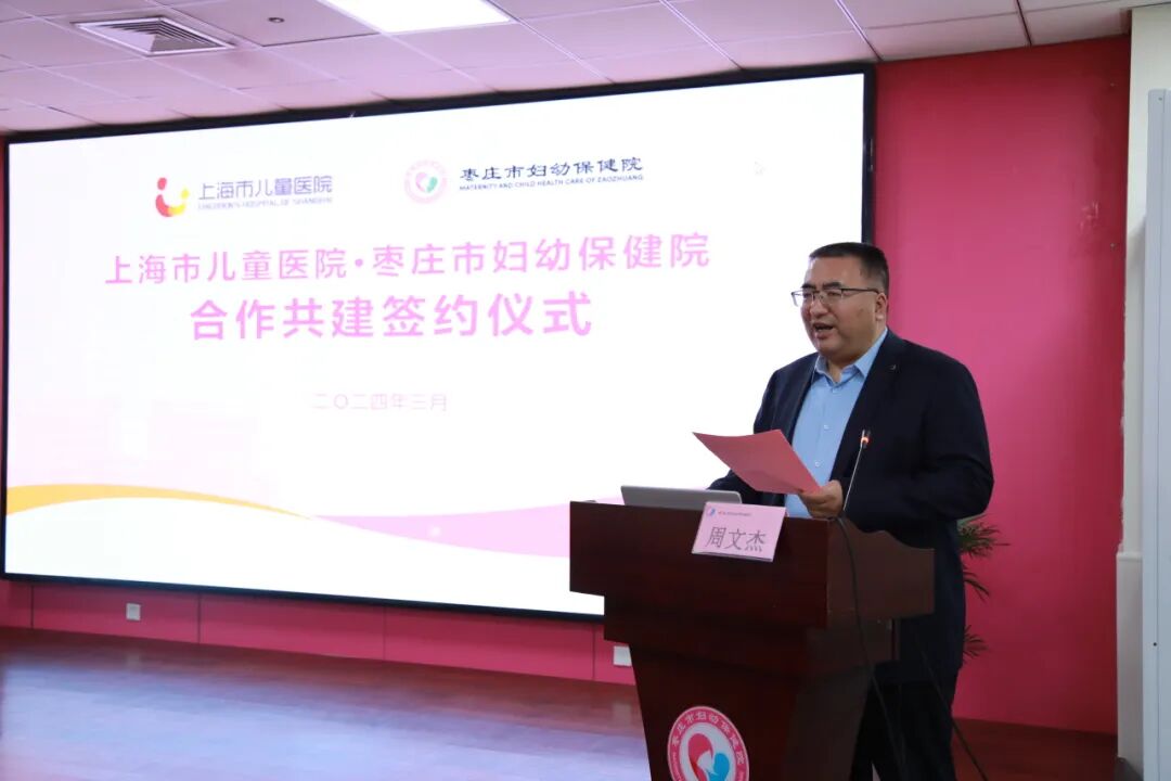 他表示,上海市儿童医院与市妇幼保健院合作共建,对直接推动枣庄地区儿科的学科发展意义非凡,进一步打通了上级专家资源的合作共享和危重患儿诊疗的“绿色通道”,医院将积极把握此次有利契机,积极学习先进医疗技术和管理、科研经验,着力提升儿科疾病诊疗能力,夯实儿科专业技术实力,以更加安全、有效、便捷、温馨的服务,更好地保障辖区人民群众的生命健康。