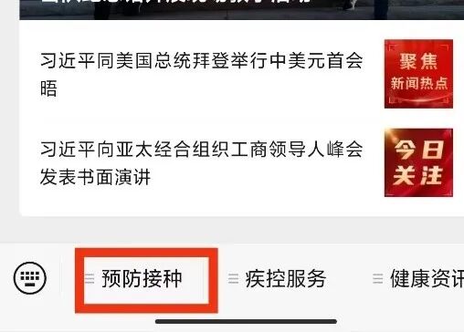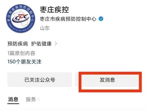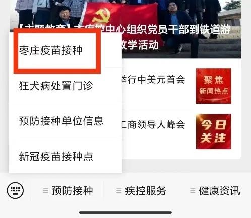 点击公众号底部菜单栏 “预防接种”,选择“枣庄疫苗接种”菜单