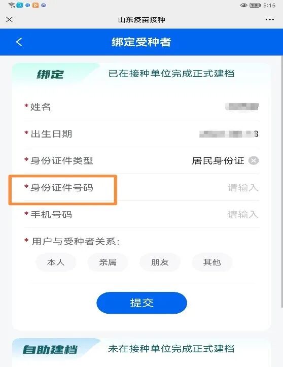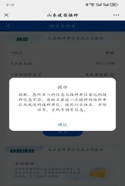 根据页面提示,输入儿童信息(注意:2岁以上儿童身份证号是必填项),即可进入下一步界面。若未登记身份证号则无法进入下一界面,需到最近一次接种的接种单位或就近的接种单位补录身份证号。