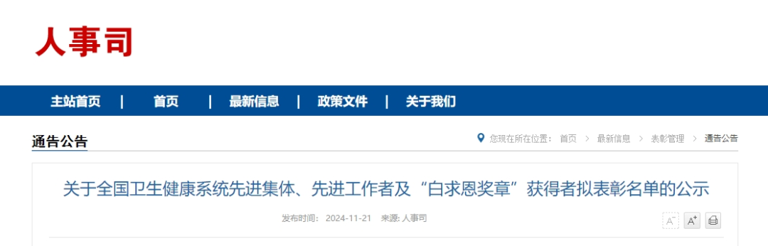 全国卫生健康系统先进集体、先进工作者及“白求恩奖章”获得者评选表彰领导小组办公室