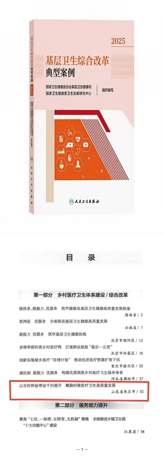 近日,枣庄市村卫生室建设典型做法“以百村样板带动千村提升 赋能村级医疗卫生高质量发展”入选国家卫生健康委《基层卫生综合改革典型案例2025》。2024年,枣庄市在全省率先启动实施村卫生室三年提升行动,利用3年时间打造样板村卫生室300家,持续提升村级医疗卫生服务能力。截至目前,全市各级投入1.5亿元,高标准打造样板村卫生室270家,帮扶薄弱村卫生室110家,带动全市所有的村卫生室达到“五有三提升”标准,实现村级医疗卫生服务基础设施、人才队伍、服务能力、规范管理、运行保障“五大工程”全面提升,村卫生室诊疗人次和业务收入同比增长30%以上,基层医疗卫生机构就诊率提升至65.93%,实现了乡村医疗卫生服务体系从“保基本”向“高品质”的跨越升级。