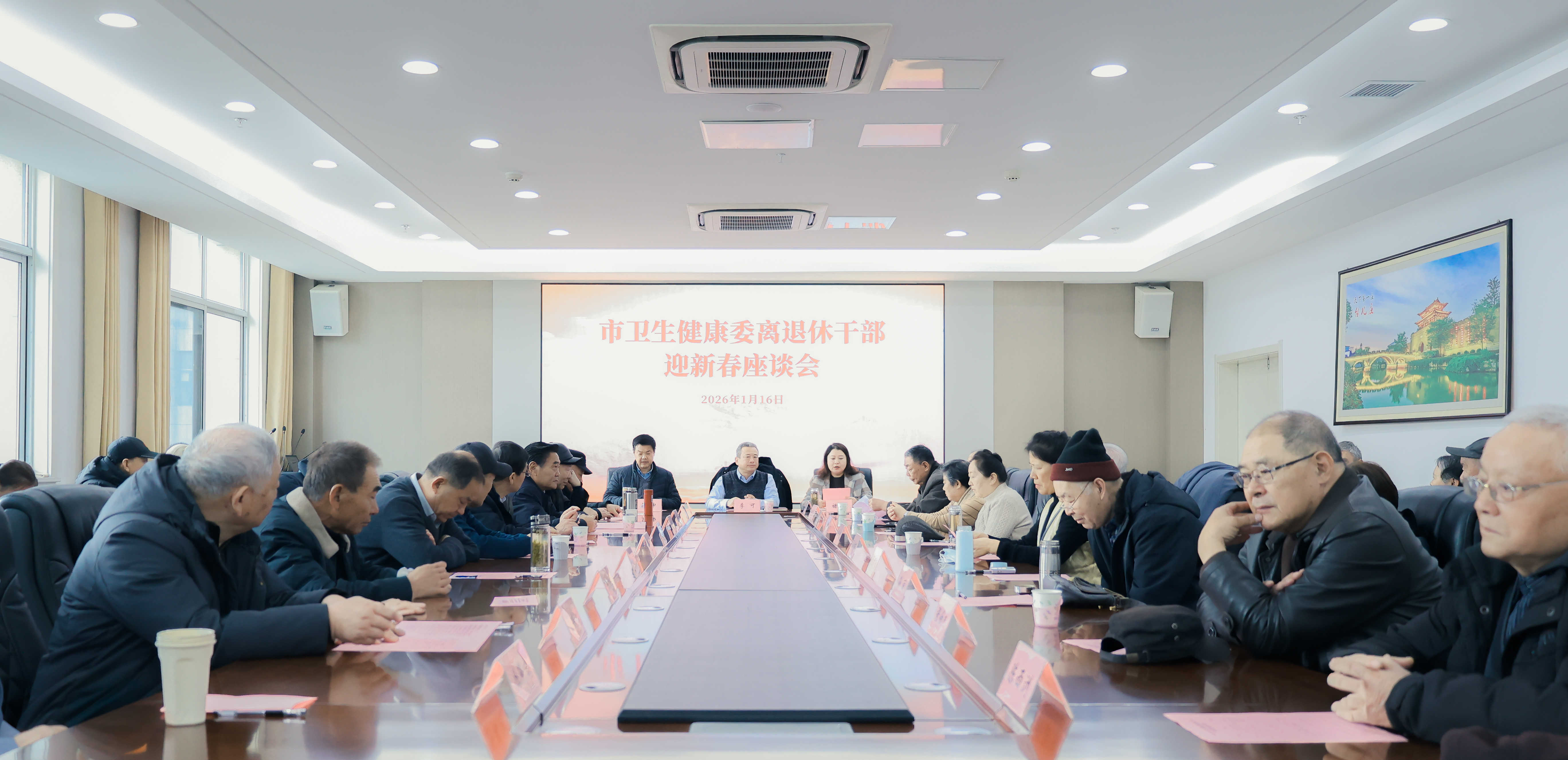 为弘扬尊老敬老传统美德、进一步凝聚离退休干部的智慧与力量。1月16日,市卫生健康委在市精神卫生中心举办离退休干部迎新春座谈会。市卫生健康委党组成员、市卫生健康服务中心党总支书记李可出席活动,座谈会由市卫生健康委党组成员、副主任褚旭主持。与会老同志欢聚一堂,共叙往昔情谊,共话发展成就,共迎新春佳节。