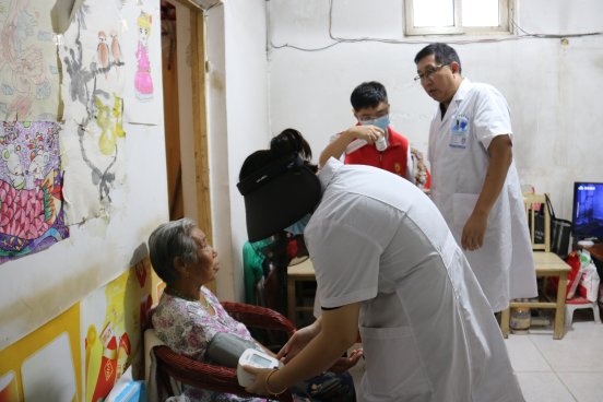 除了现场诊疗,团队还针对行动不便的高龄老人、残疾居民开展“上门巡诊”。在长期卧床的86岁梁大爷家中,内科医师为其检查心肺功能、测量血压,并叮嘱日常饮食、用药注意事项;同时更新家庭医生签约信息,安排乡村医生每周电话随访,随时跟进健康状况。“不用去城里,大医院的医生就来家里看病,还帮助我签约了家庭医生,以后有不舒服再也不用犯愁了!”梁大爷的老伴握着医生的手,连连道谢。