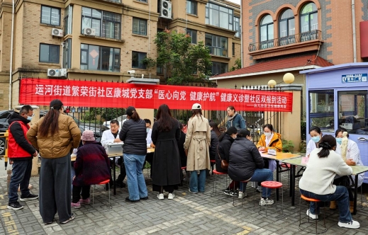 近日,台儿庄区卫生健康局组织医务人员和党员志愿者,到运河街道繁荣街社区开展健康义诊暨社区“双报到”活动,为社区居民带来了“健康大礼包”。