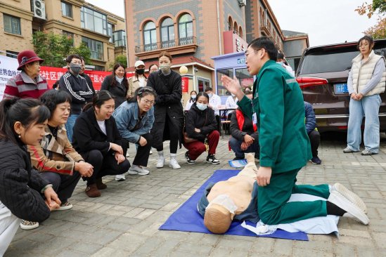 急诊急救区域同样人气高涨,医生认真讲解心肺复苏急救知识,并利用模拟人进行现场示范,居民们认真倾听并新自体验。