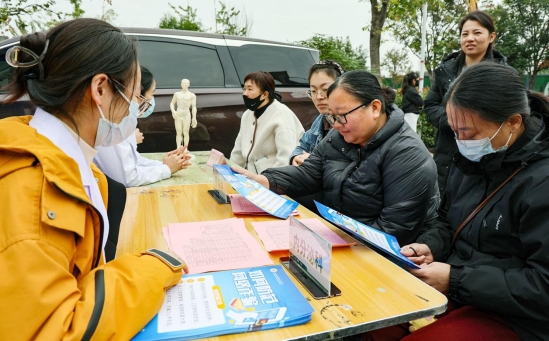 活动现场悬挂着醒目的条幅,服务项目涵盖内科、中医科、针灸科等,前来咨询和就诊的居民络绎不绝。中医脉诊、针灸体验引了众多居民驻足体验,医务人员耐心倾听居民们的健康困扰,细致地解疑释惑,从日常保健到疾病预防,为大家提供全面的健康建议。