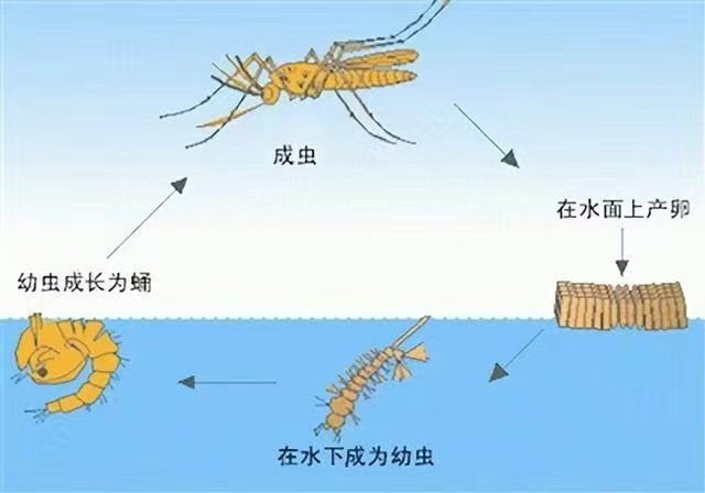 蚊卵必须在水体中孵化,常见孳生地包括:稻田、池塘(中华按蚊、三带喙库蚊);污水沟、下水道(淡色库蚊);容器积水如花盆、轮胎(白纹伊蚊)。