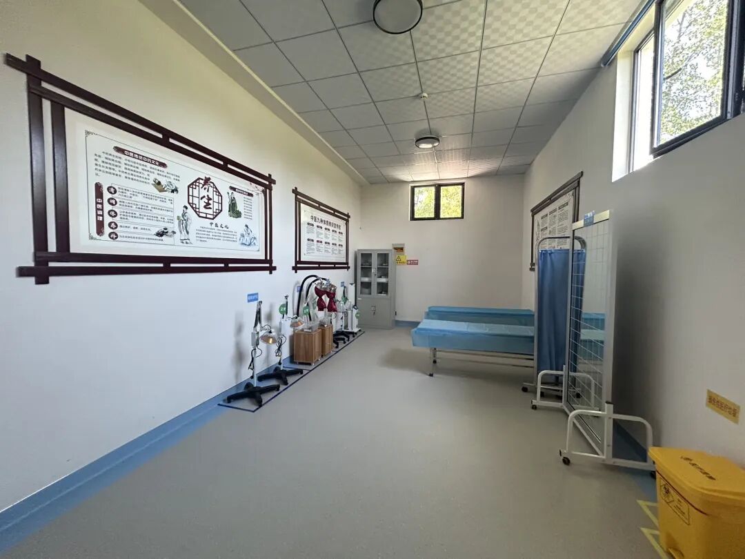卫生室内设有门诊、药房、治疗室、观察室、中医阁、康复室、检查检验室、健康教育和公共卫生服务室等科室。科室布局合理,制度健全,常规诊断治疗设施设备齐全,周围环境优美。配备的壁挂式全科诊断仪、数字化卫生室工作站等设施设备,能够满足周边患者的日常诊疗、公共卫生、康复理疗、自助健康管理等就医需求。