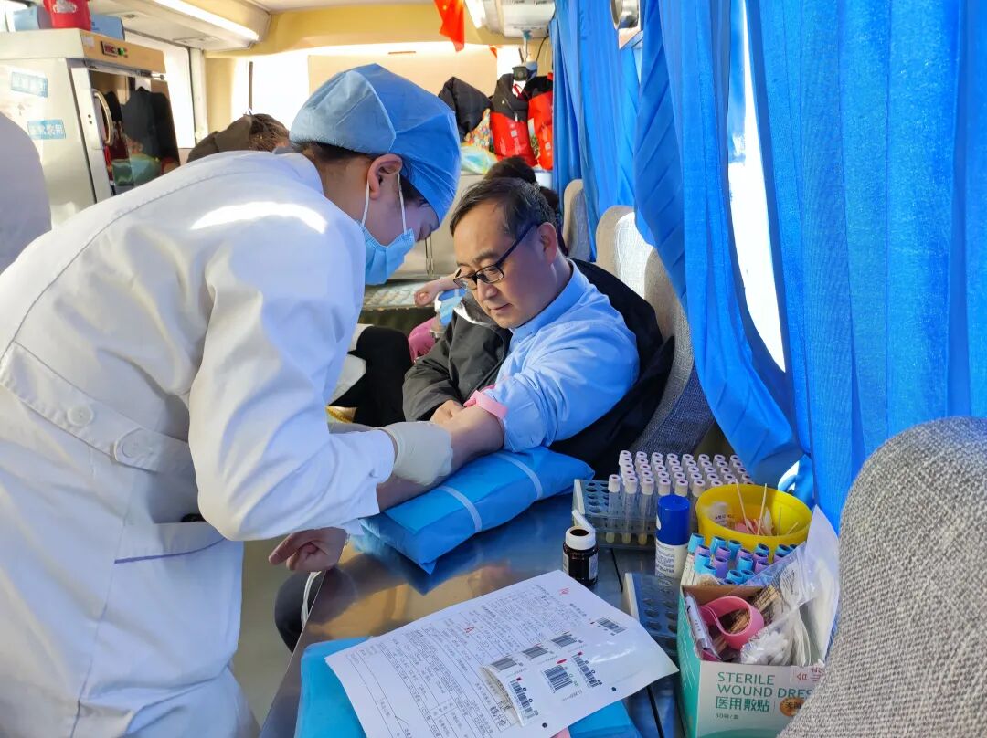 冬日的寒气挡不住枣庄医院广大职工的热情,大家早早赶到采血地点,认真填写献血登记表、测量血压、抽血化验,经血液检验合格后进行无偿献血。