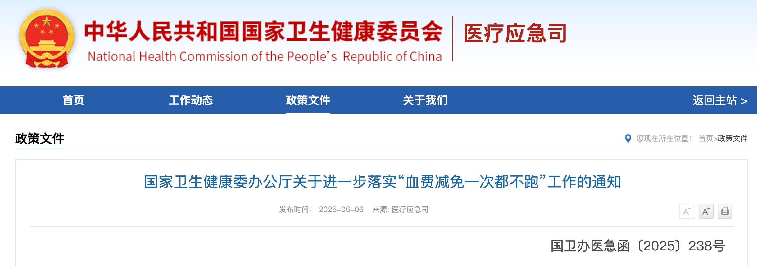 到2025年底前,全国所有血站和用血医疗机构全面落实“血费减免一次都不跑”政策,形成“医院直免为主、线上申请为辅”的服务模式。国家卫生健康委将定期汇总、调度各地血费减免办理情况和相关工作进展,确保政策落地见效,群众可感可及。