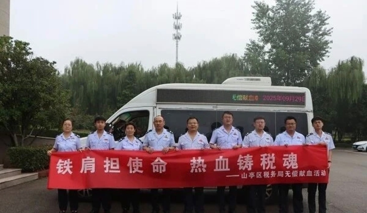 9月29日,山亭区税务局迅速响应无偿献血倡议,第一时间启动无偿献血宣传动员,以 “铁肩担使命·热血铸税魂”的鲜明姿态,成为全区首个开展无偿献血的政府职能部门,用实际行动诠释 “为国聚财、为民收税” 之外的社会责任担当。