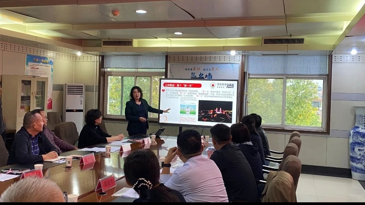 枣庄市中心血站副站长张惠主持了联合内审首次会议。市卫生健康委卫生应急科科长黄涛致辞。黄科长对内审专家组的到来表示热烈欢迎,黄科长指出血液安全是医疗卫生生命线,区域协同是破解血液保障难题的关键。希望大家以此次联审为新起点,凝心聚力、互学互鉴,以更严标准、更实举措筑牢血液安全防线,为区域医疗卫生高质量发展再作贡献!市中心血站党支部书记、站长胡卫国介绍血站工作情况。