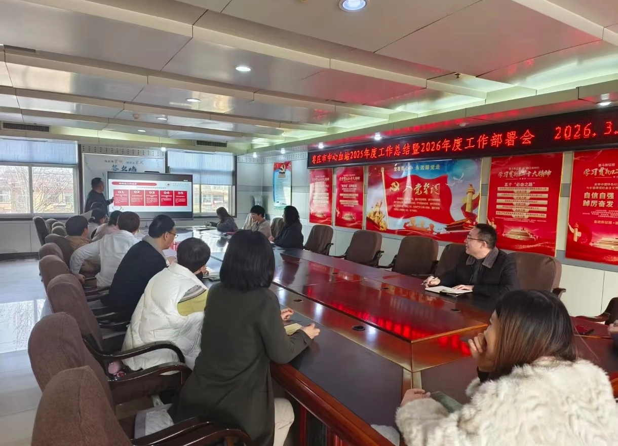 3月10日,枣庄市中心血站召开2025年度工作总结暨2026年度工作部署会。班子成员及中层干部参加会议,会议由党支部书记、站长胡卫国主持。