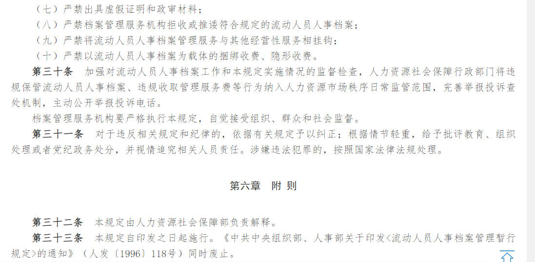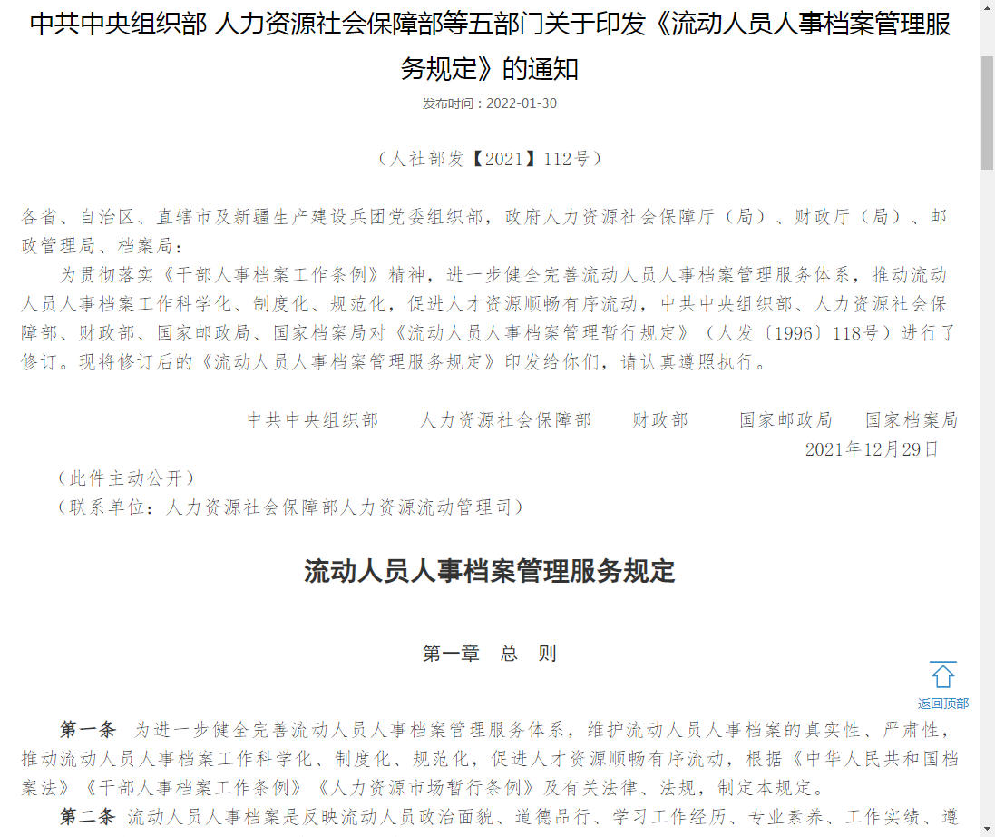 中共中央组织部人力资源社会保障部等五部门关于印发《流动人员人事档案管理服务规定》的通知